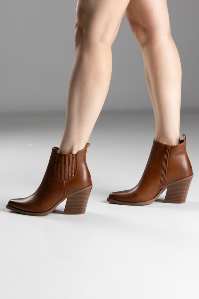 Western Μποτάκια με κρυφό λάστιχο στο πλάι – Κάμελ
