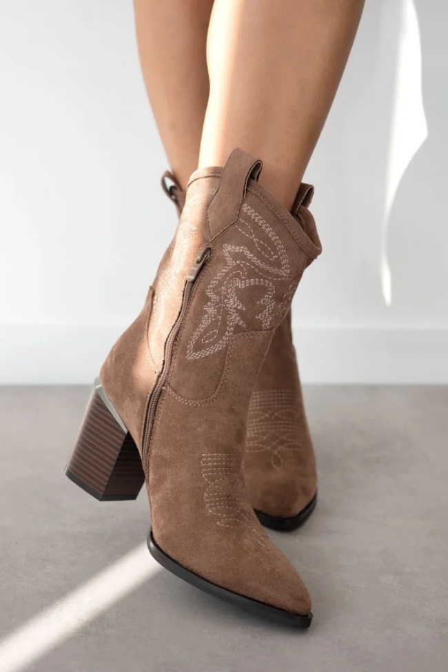 Σουέτ Western Μποτάκια με Ραφές & Χρυσό Στοιχείο